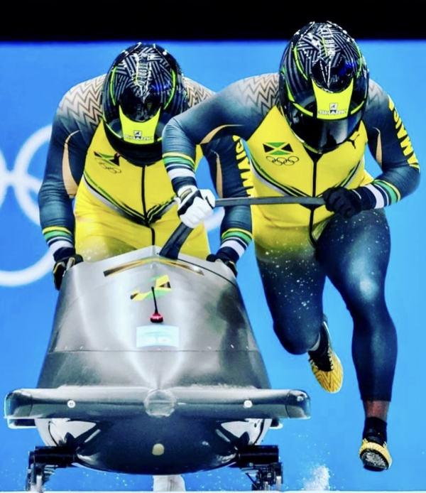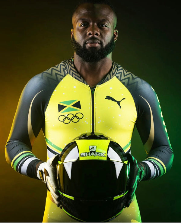 In 2022, I brought that same spirit to the global stage, designing custom bodysuits for the Jamaican Bobsled Team at the Winter Olympics in China—drawing inspiration from the national flag and the iridescent wings of the Doctor Bird.