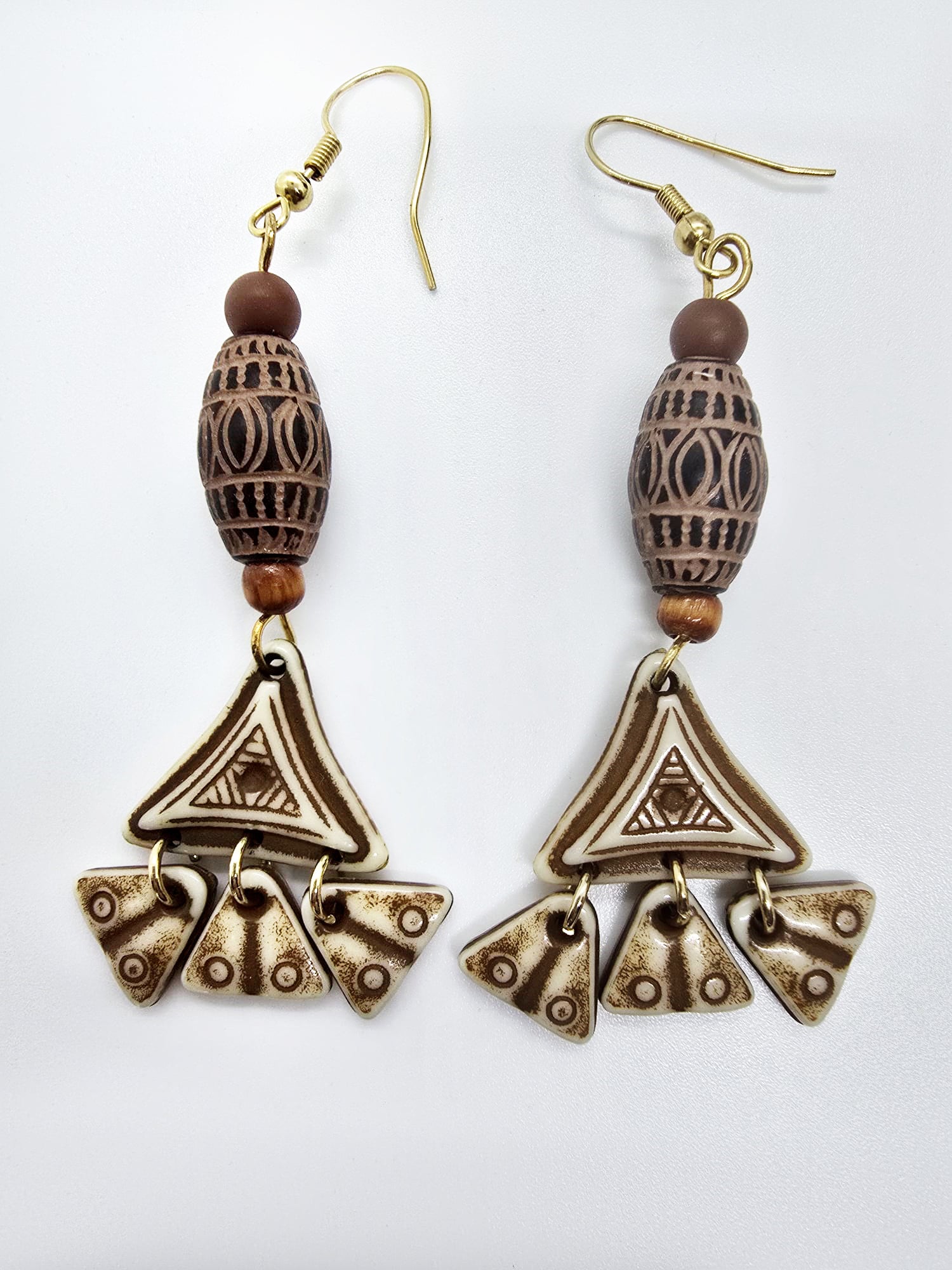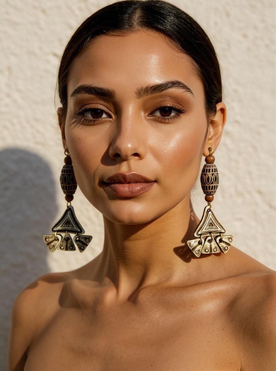 Bold tribal pendants with intricate etched patterns, topped with carved wooden beads and antique-gold spacers. Lightweight, high-impact, and dripping in African royalty vibes. The perfect power piece for Odyssey Gold, Baku Giraffe, or any ESCALA look that demands attention.